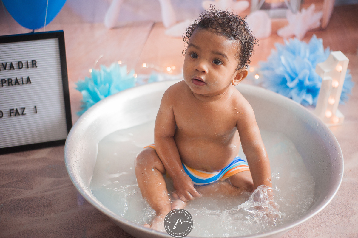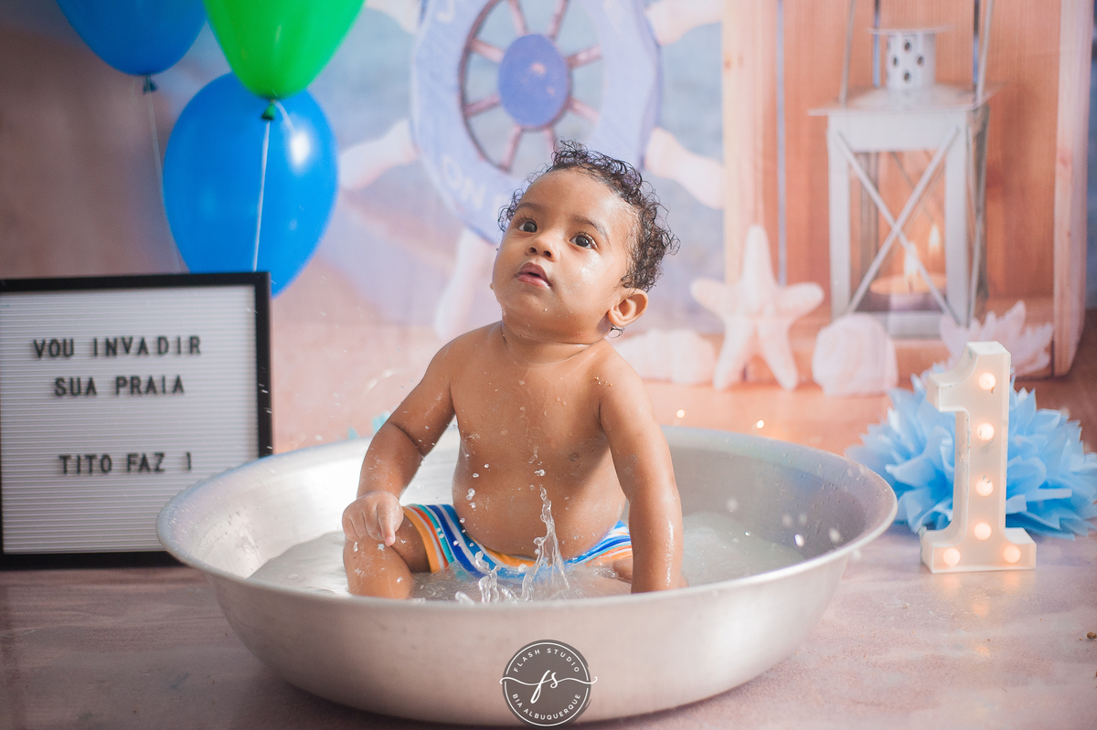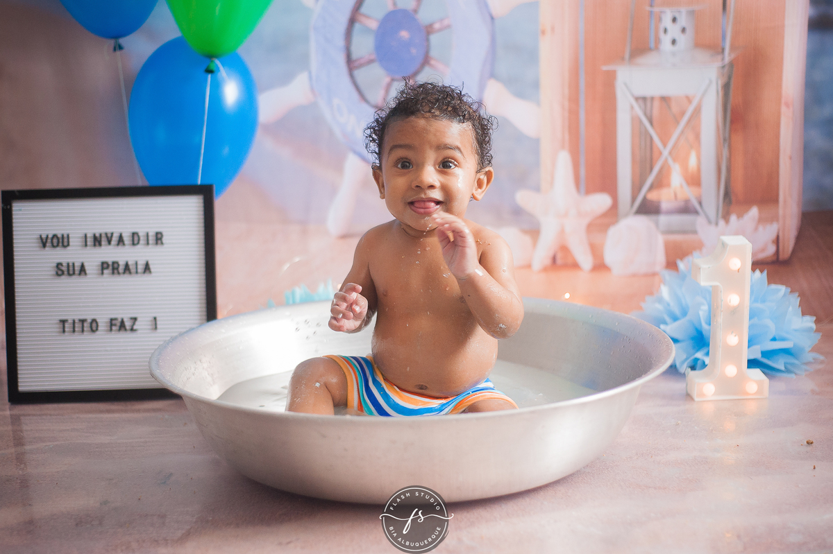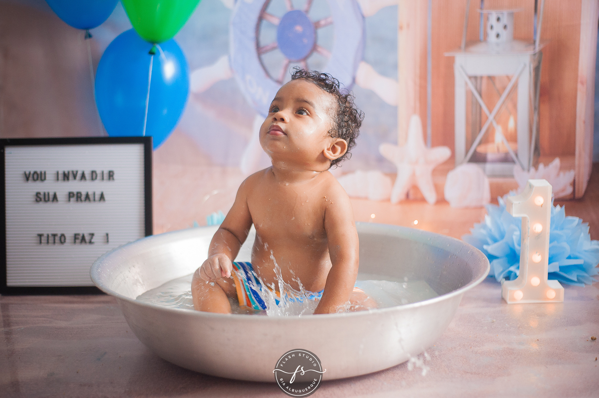 E depois Tito se divertiu demais na hora do banho.
