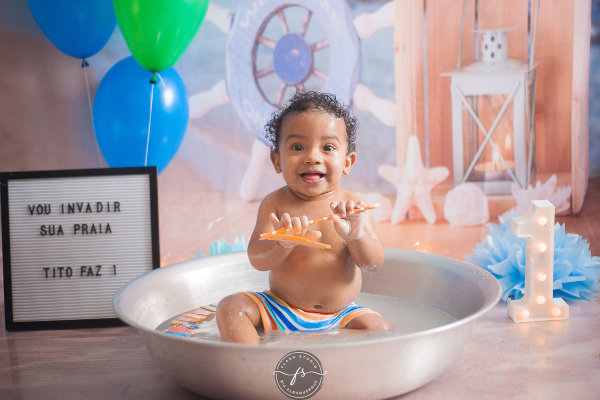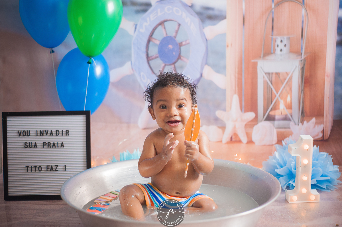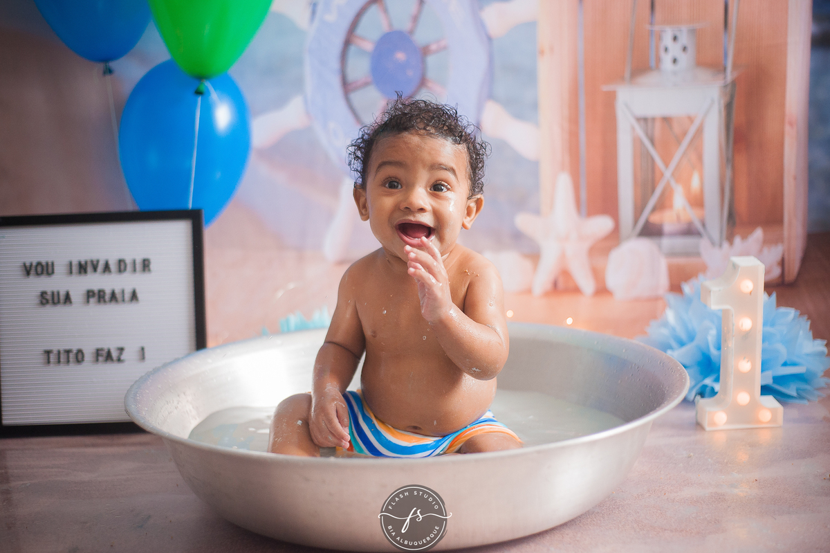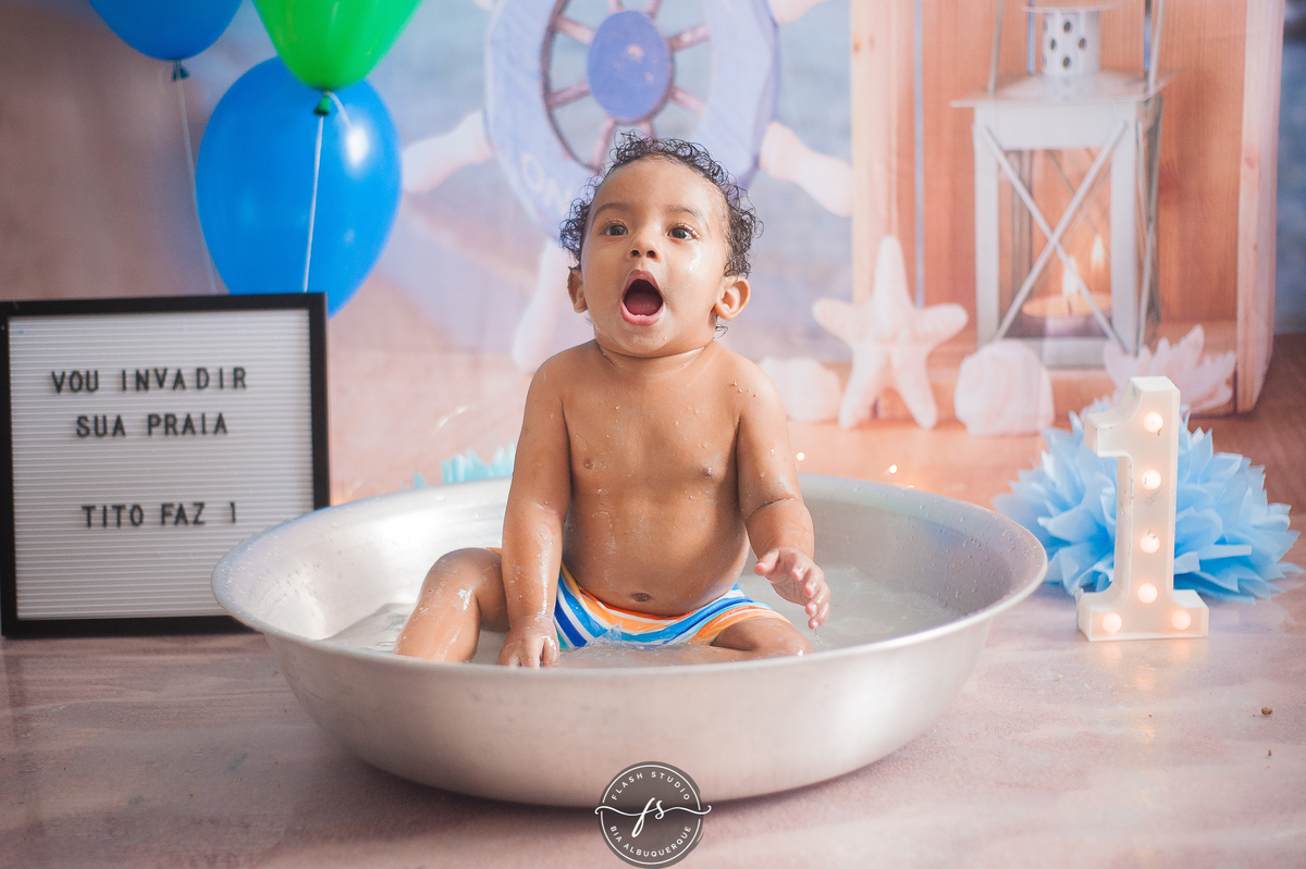 E depois Tito se divertiu demais na hora do banho.